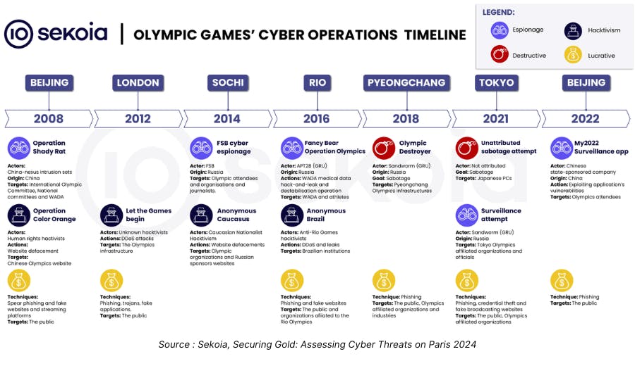 Les Jeux olympiques, par leur dimension géopolitique, économique et médiatique, constituent une opportunité idoine d’ingérences, de profits ou d’influence pour l’ensemble des acteurs de la menace (APT, cybercriminels, hacktivistes).
